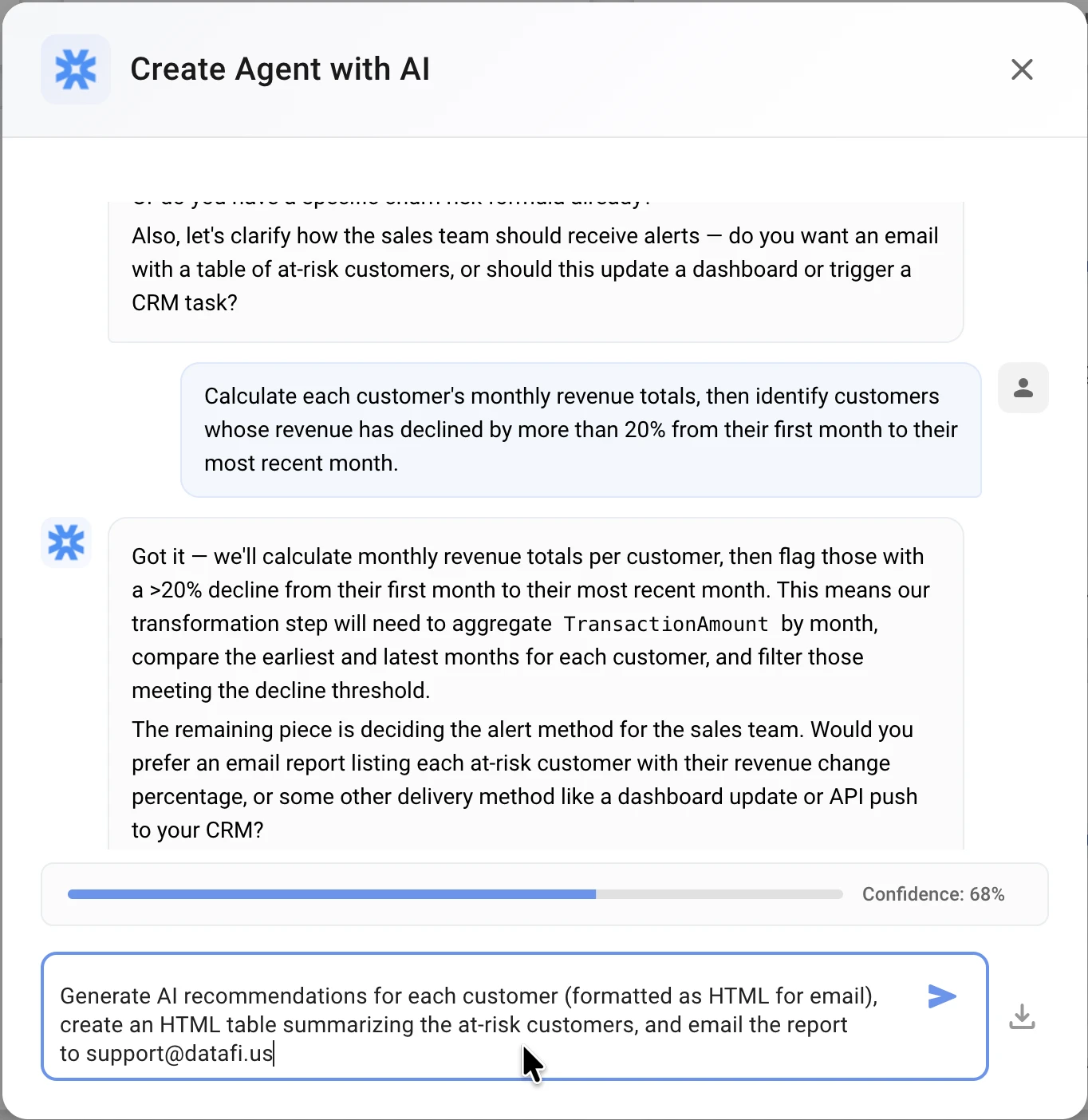 AI asks: "What should happen when at-risk customers are found?"